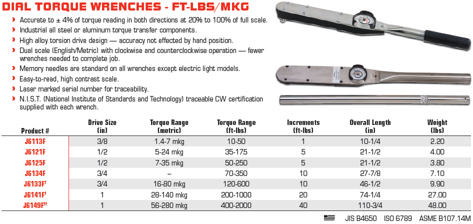 Chế tạo theo tiêu chuẩn ISO 6789, sai số chế tạo do nhà sản xuất Proto/USA niêm yết: +/-4%.