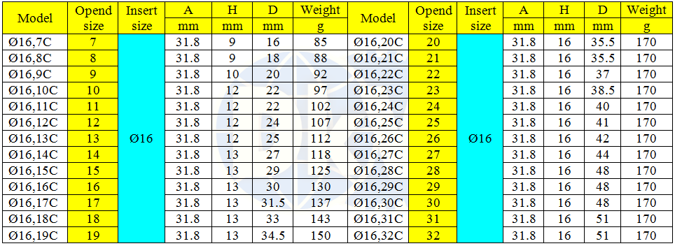Đầu cờ lê lực dạng tròng hở size đầu vào: Ø16 mm, đầu ra: 6 - 32 mm chuyên dùng cho các loại cờ lê lực đầu dời của các hãng khác nhau.