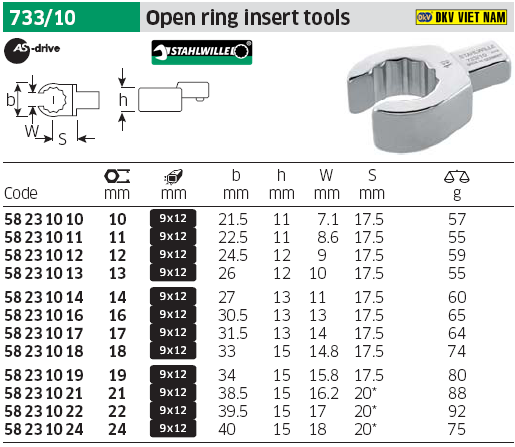 • CO, CQ do nhà sản xuất Stahlwille cấp (Option: CO của phòng Thương mại công nghiệp Đức).