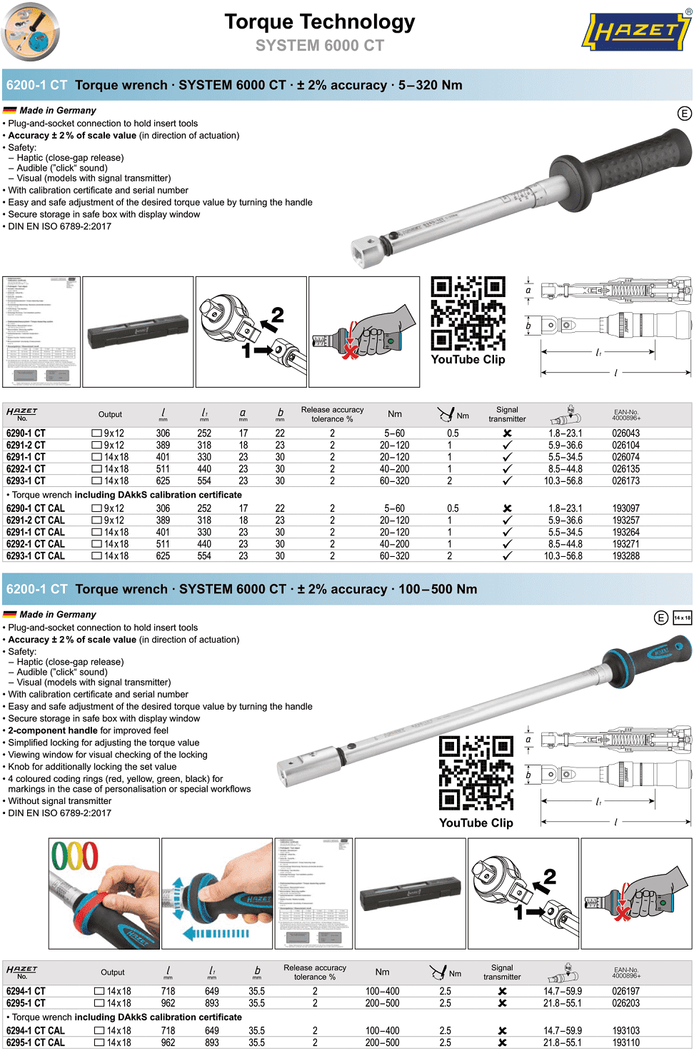 Cờ lê lực Hazet 6290-1 CT, Cờ lê siết lực Hazet 6290-1 CT, Hazet torque wrench 6290-1 CT: thuộc dạng cờ lê lực đầu dời, có dải lực siết: 5 - 60 N.m, size đầu nhét cờ lê: 9 x 12mm, bước tiến: 0.5 N.m/vạch. Cờ lê lực Hazet 6290-1 CT có sai số chế tạo: +/-2%.