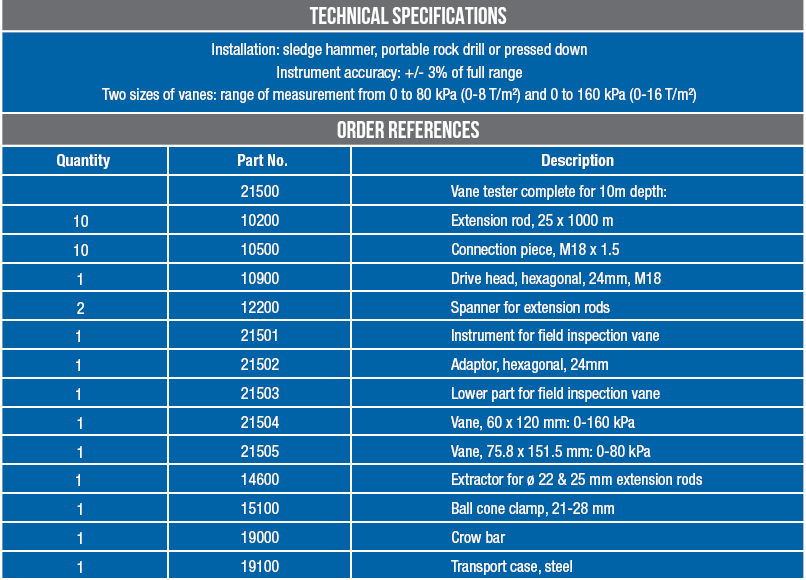 Thiết bị cắt cánh hiện trường Geonor H-70 sử dụng mô men do người vận hành tạo ra để kiểm tra nhanh độ bền cắt của đất sét mềm và trung bình tại hiện trường.Khảo sát ở độ sâu lên tới 10m.