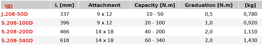 Cờ lê lực Facom J.208-50D, Cờ lê siết lực Facom J.208-50D, Facom torque wrench J.208-50D: là loại cờ lê lực đầu dời, có dải lực 10 - 50 N.m, size nhét đầu cờ lê:9 x 12 mm, bước tiến: 0.5 N.m/vạch. Chuyên dùng để siết lực (moment) chính xác các loại bulong, đai ốc, vít trong công nghiệp.