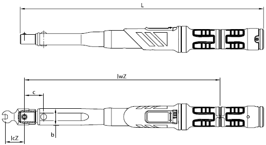 Trên thân cờ lê lực Gedore DMZ 100 trang bị hai thang đo: N.m (20 - 100 N.m) và lbf.ft (15 - 75 lbf.ft) cho phép siết lực theo hệ mét và Anh/Mỹ, quan sát dễ dàng qua cửa thăm. Với lẫy gạt đơn vị đo N.m/lbf.ft (gạt lên/xuống), cho phép chuyển đổi nhanh chóng, thuận tiện.