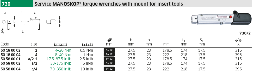 Thuộc dòng sản phẩm click MANOSKOP® 730 (khi đạt lực sẽ kêu tạch, để báo hiệu đạt lực siết).