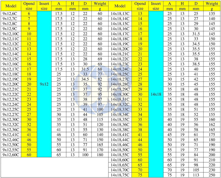 3. ĐẦU TRÒNG HỞ | 9x12 mm | 14x18 mm | 6 - 75 mm