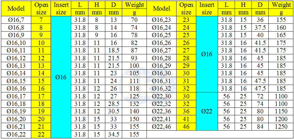 2. ĐẦU CỜ LÊ LỰC DẠNG TRÒNG | Ø 16 mm | Ø 22 mm | 6 - 46 mm