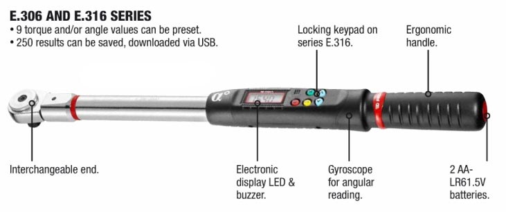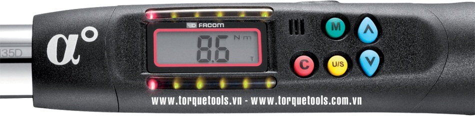 Cài đặt chỉ số lực siết, góc nghiêng thông qua 5 phím bấm dọc theo thân cờ lê lực Facom E.316A30R. Bộ nhớ lưu tới 250 kết quả đo siết, với 9 chương trình cài đặt chỉ số lực siết, góc nghiêng, cài đặt trước hoặc gọi lại lịch sử cài đặt đo siết trước đây.