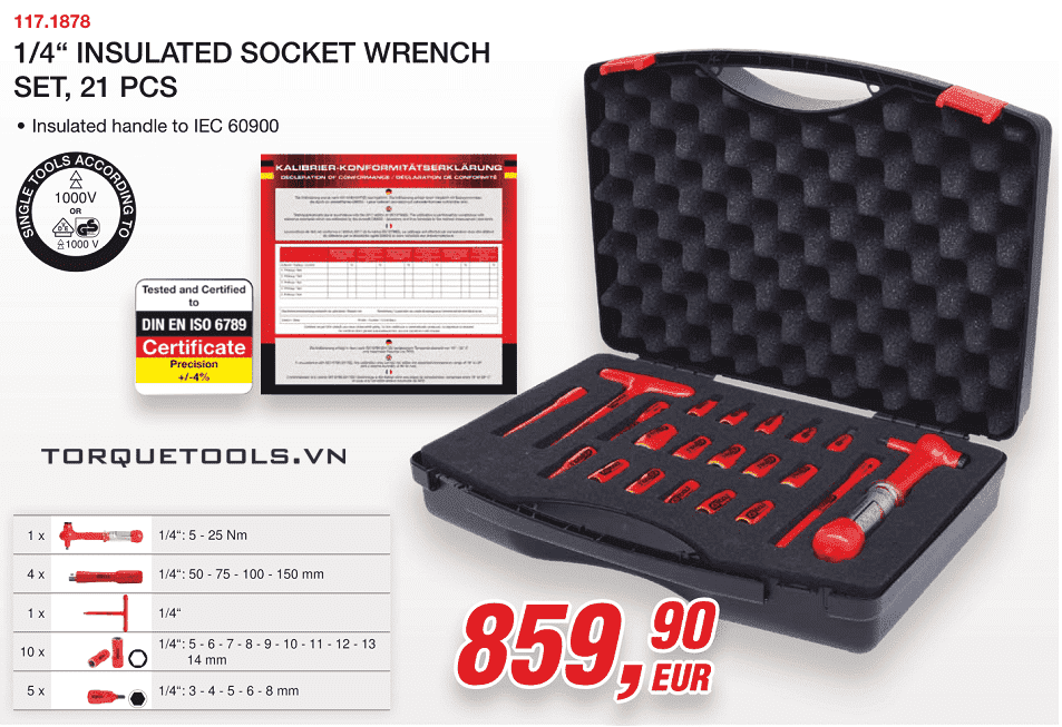 BỘ CỜ LÊ LỰC CÁCH ĐIỆN KS TOOLS 117.1878 | BỘ CỜ LÊ SIẾT LỰC CÁCH ĐIỆN KS TOOLS 117.1878 | KS TOOLS INSULATED TORQUE WRENCH SET 117.1878 | 5 - 25 N.m | 1/4" | 21 chiếc