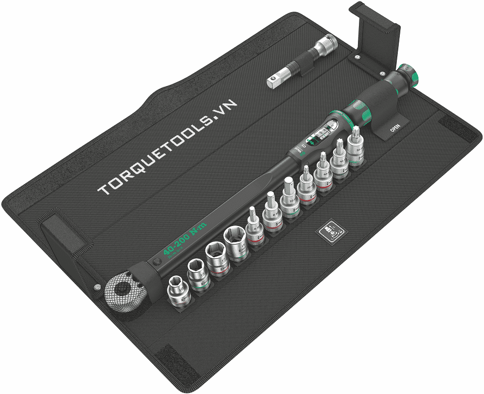 Bộ cờ lê lực Wera 05075680001, bộ cờ lê siết lực Wera 05075680001, Wera torque wrench set 05075680001 chuyên dùng để siết lực chính xác các loại bulong, đai ốc, vít trong công nghiệp, với dải lực siết: 40 - 200 N.m, 1/2". Bộ cờ lê lực Wera 05075680001 gồm 13 chi tiết, đựng trong túi vải.