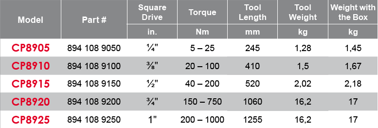 CỜ LÊ LỰC CHICAGO PNEUMATIC CP8905 | CỜ LÊ CÂN LỰC CHICAGO PNEUMATIC CP8905 | CHICAGO PNEUMATIC TORQUE WRENCH CP8905 | 5 - 25 N.m | 1/4"