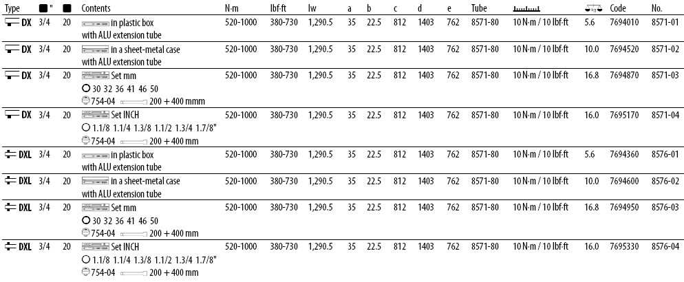 Cờ lê lực Gedore 8571-01, Gedore torque wrench 8571-01 là dòng sản phẩm cờ lê lực thân vỏ hợp kim nhôm, có dải lực 520 - 1.000 N.m, size khẩu: 3/4", bước tiến 10 N.m/vạch, sai số: +/-3%, chuyên dùng để siết lực chính xác các loại bulong cỡ vừa trong công nghiệp.