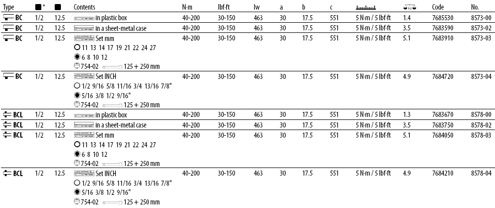 Cờ lê lực Gedore 8573-00, Gedore torque wrench 8573-00 là dòng sản phẩm cờ lê lực thân vỏ hợp kim nhôm, có dải lực 40 - 200 N.m (30 - 150 lbf.ft), size khẩu: 1/2", bước tiến 5 N.m/vạch, sai số: +/-3%, chuyên dùng để siết lực chính xác các loại bulong cỡ vừa trong công nghiệp.