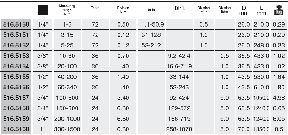 Cờ lê lực KS Tools 516.5150, cờ lê siết lực KS Tools 516.5150, KS Tools torque wrench 516.5150 là loại cờ lê lực đầu liền, có dải lực: 1 - 6 N.m (11.1 - 50.9 lbf.in), cỡ khẩu: 1/4", chuyên dùng để siết lực (moment) chính xác trong công nghiệp. Cờ lê lực KS Tools 516.5150 có sai số chế tạo: +/-3%, với số lần siết lực ~ 5.000 lần mới phải hiệu chuẩn (calibration). Chiều dài: 210 mm, trọng lượng: 0.29 kg.