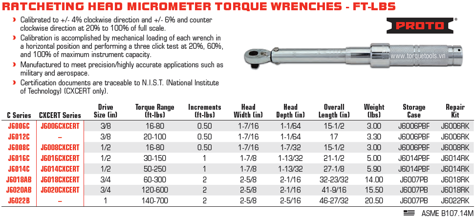 CỜ LÊ LỰC PROTO J6006C | CỜ LÊ SIẾT LỰC PROTO J6006C | CỜ LÊ CÂN LỰC PROTO J6006C | 16 - 80 ft.lbs | 1/4"