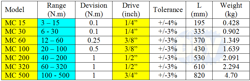 Cờ lê lực Proxxon MC 100, cờ lê siết lực Proxxon MC 100 có các đặc điểm: có dải lực siết: 20 - 100 N.m, bước tiến: 0.5 N.m/vạch, size nhét khẩu: 3/8". Đây là loại cờ lê lực đầu liền dùng cho khẩu chụp, chuyên dùng siết lực cho các loại bulong, đai ốc, vít ...cỡ trung bình trong công nghiệp.