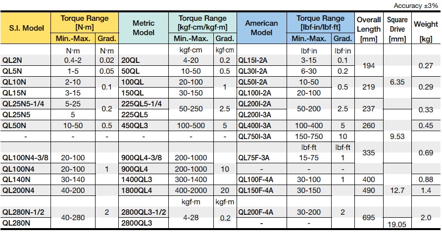 CỜ LÊ LỰC TONICHI QL2N | CỜ LÊ SIẾT LỰC TONICHI QL2N | CỜ LÊ CÂN LỰC TONICHI QL2N | 0.4 - 2 N.m | 1/4"