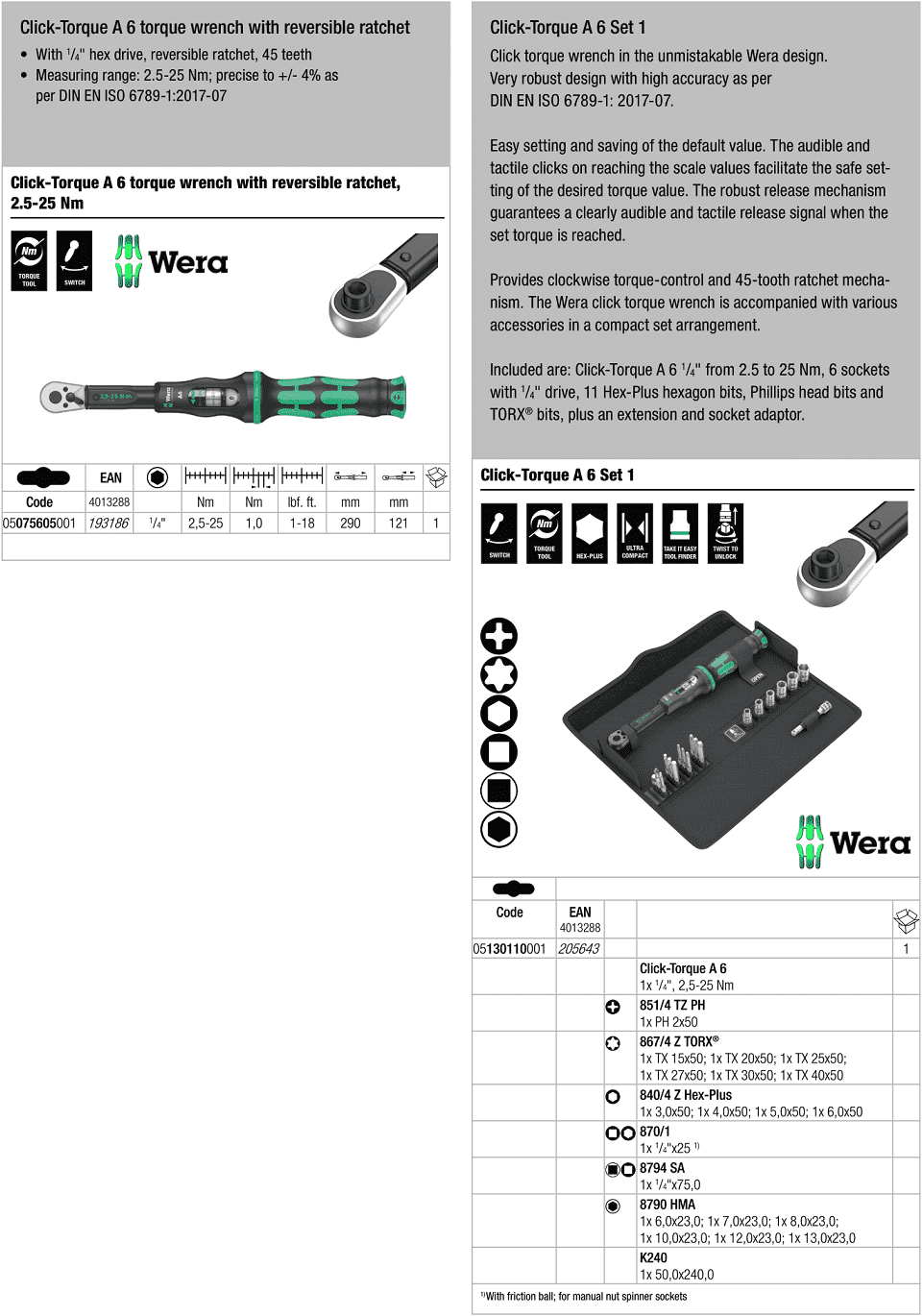 CỜ LÊ LỰC WERA 05075605001 | CỜ LÊ CÂN LỰC WERA 05075605001 | CỜ LÊ SIẾT LỰC WERA 05075605001 | WERA TORQUE WRENCH 05075605001 | 2.5 - 25 N.m | hex.1/4"