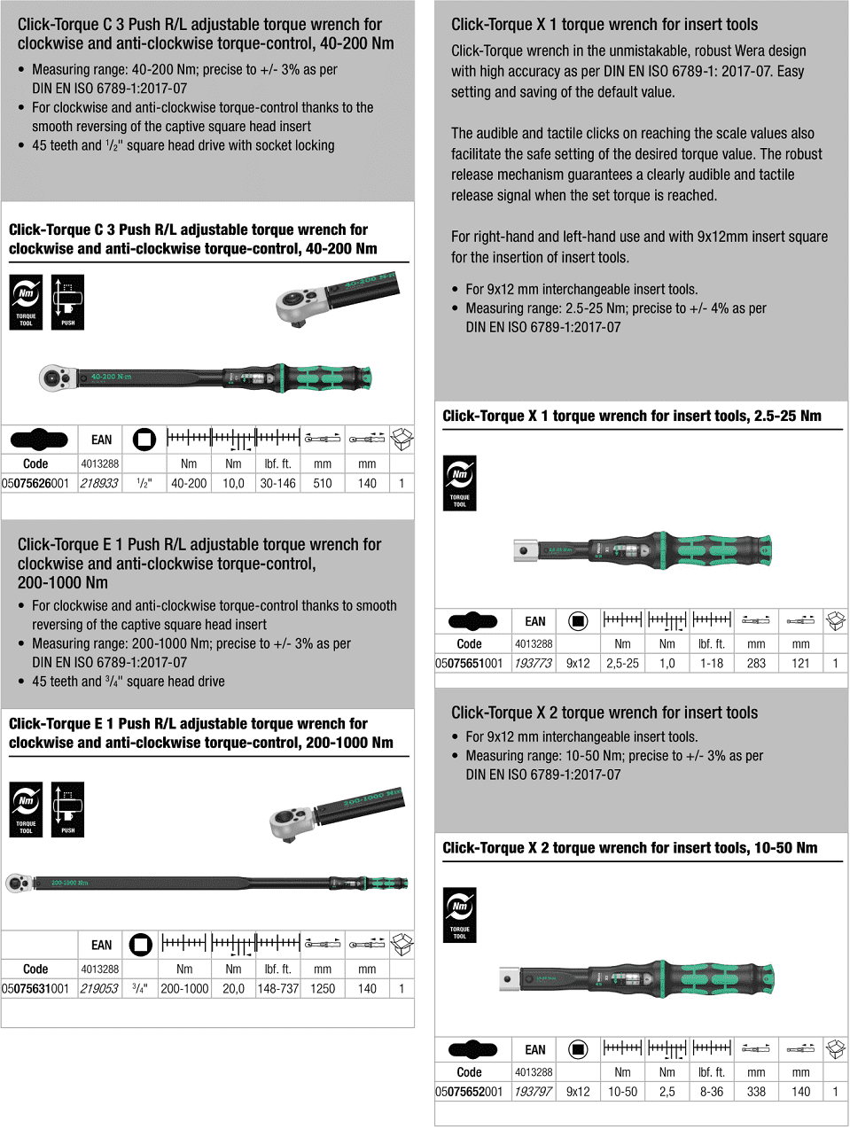 Cờ lê lực Wera 05075631001 chế tạo theo tiêu chuẩn DIN EN ISO 6789-1: 2017-07, với sai số chế tạo: +/-3%. Chiều dài tổng thể: 1.250 mm.