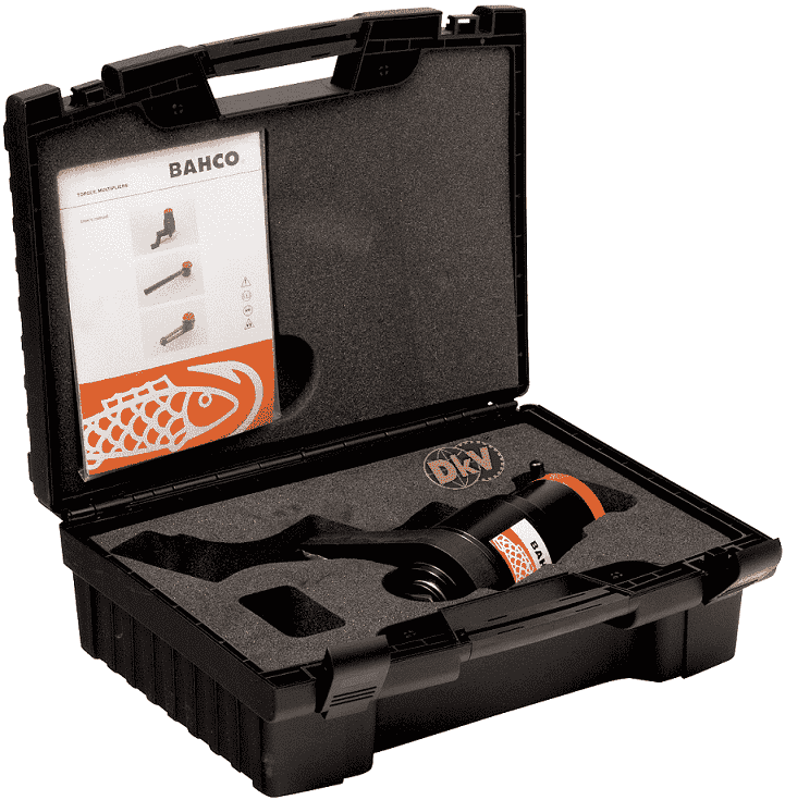 Thao tác cài đặt lực siết cờ lê nhân lực Bahco 89222CR-1000 diễn ra nhanh chóng và thuận tiện thông qua cờ lê lực phụ trợ (tay công), với nguyên tắc lực đầu vào nhân với hệ số nhân cho lực đầu ra.
