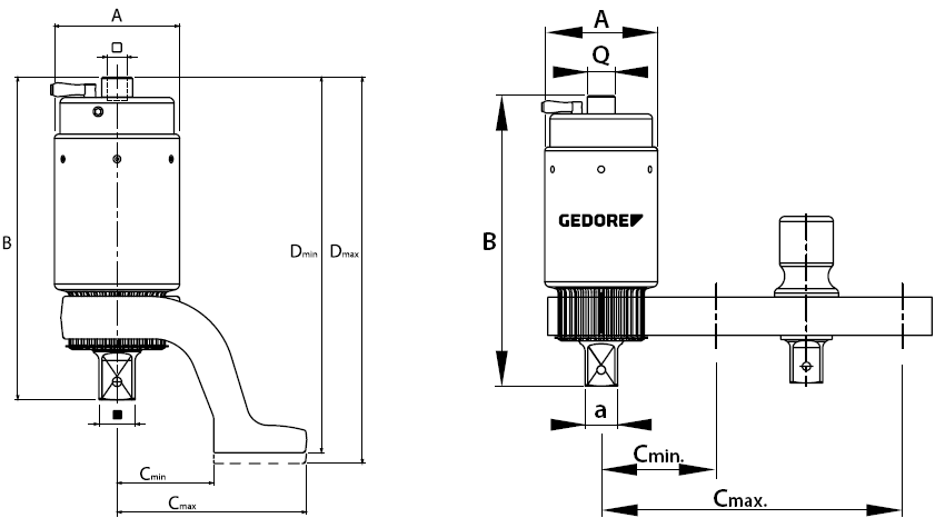 Gedore có thêm sự lựa chọn (Option), khi lắp thêm càng phản lực ZL-DVV40 để chuyển đổi sang loại cờ lê nhân lực dạng mỏng, phù hợp khi siết các vị trí bị giới hạn chiều cao.