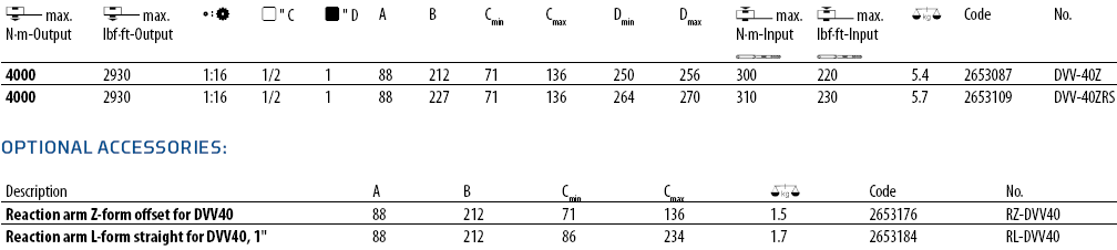 Cờ lê nhân lực Gedore DVV-40Z, Gedore torque multiplier DVV-40Z có lực dải lực siết: 500 - 4.000 N.m, với hệ số nhân: 16:1, chuyên dùng để siết lực (moment) chính xác các loại bulong, đai ốc cỡ lớn trong công nghiệp. Cờ lê nhân lực Gedore DVV-40Z có cỡ khẩu đầu vào: 1/2", cỡ khẩu đầu ra: 1".