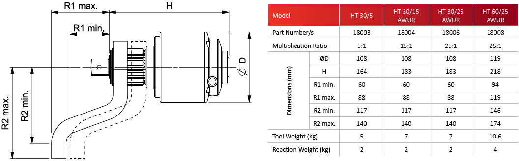 Cờ lê nhân lực Norbar HT-30/5 (Code: 18003) thuộc dòng sản phẩm Handtorques small diameter HT30 của Norbar/UK, là dụng cụ chuyên dụng để siết lực (moment) chính xác các loại bulong cường độ cao trong công nghiệp, với dải lực siết: 300 - 3.000 N.m, hệ số nhân: 5:1, cỡ khẩu vào: 3/4", cỡ khẩu ra: 1".