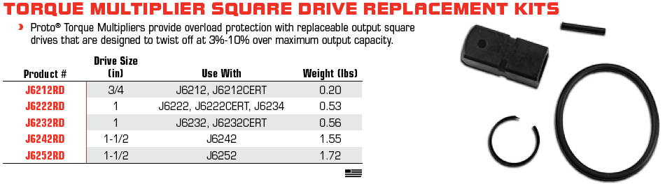 Cờ lê nhân lực Proto J6212, Proto Multiplier torque wrench J6212 chuyên dùng để siết lực chính xác các loại bulong, đai ốc trong công nghiệp lắp. Có dải lực: 200 - 1.200 ft.lbs (271 - 1.626 N.m), hệ số nhân: 6 : 1, cỡ khẩu vào: 1/2", cỡ khẩu ra: 3/4".
