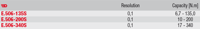 Thiết bị đo, test lực Facom E.506-135S chuyên dùng để đo và test lực siết (moment) với dải lực siết: 6.7 - 135 N.m, cỡ khẩu: 1/2", sai số lực: +/-3%, sai số góc: +/-2%.