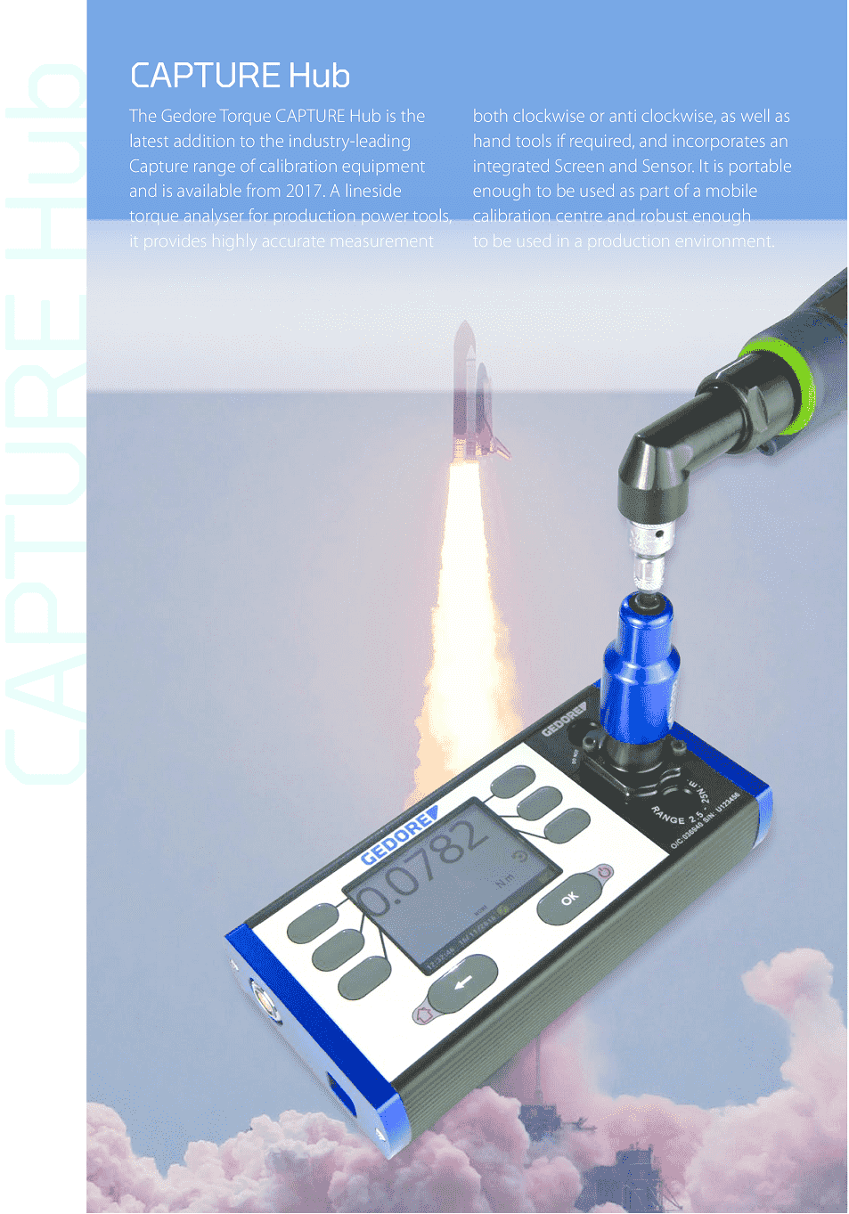 Bộ thiết bị đo test lực Gedore Capture được Torqueleader/UK (tiền thân) sản xuất và phát triển năm 2013. Trước khi chuyển giao cho Tập đoàn Gedore/Germany (mua lại năm 2016), một trong các tập đoàn hàng đầu về thiết bị siết lực của Đức. Để hiểu rõ về hệ thống Gedore Capture, phù hợp với tính chất công việc của từng khách hàng, hãy liên hệ với chúng tôi, để được tư vấn và giải đáp cụ thể.