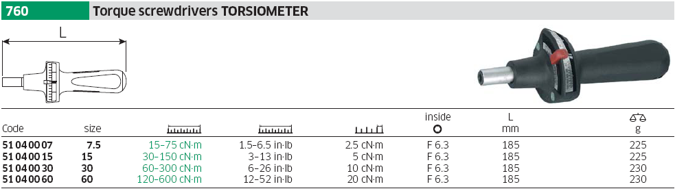 Tô vít lực Stahlwille 51040030 là dụng cụ chuyên dùng để siết lực (moment) chính xác các loại vít trong công nghiệp, với dải lực 60 - 300 cN.m (6 - 26 in.lb), cỡ đầu nhét vít: lục 1/4" (6.3 mm), bước tiến: 10 cN.m/vạch.